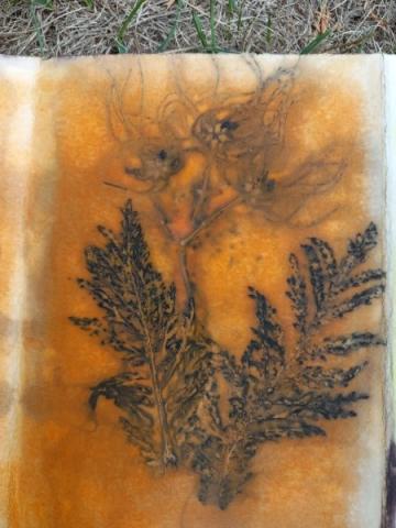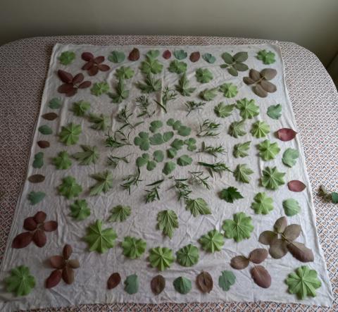 Après la cueillette, chacun prendra le temps d'installer ces végétaux frais sur du tissu préalablement préparé ou sur du papier. Différentes techniques sont abordées: Tataki-Zomé, Bundle, empreintes par frottage ou par pressage.